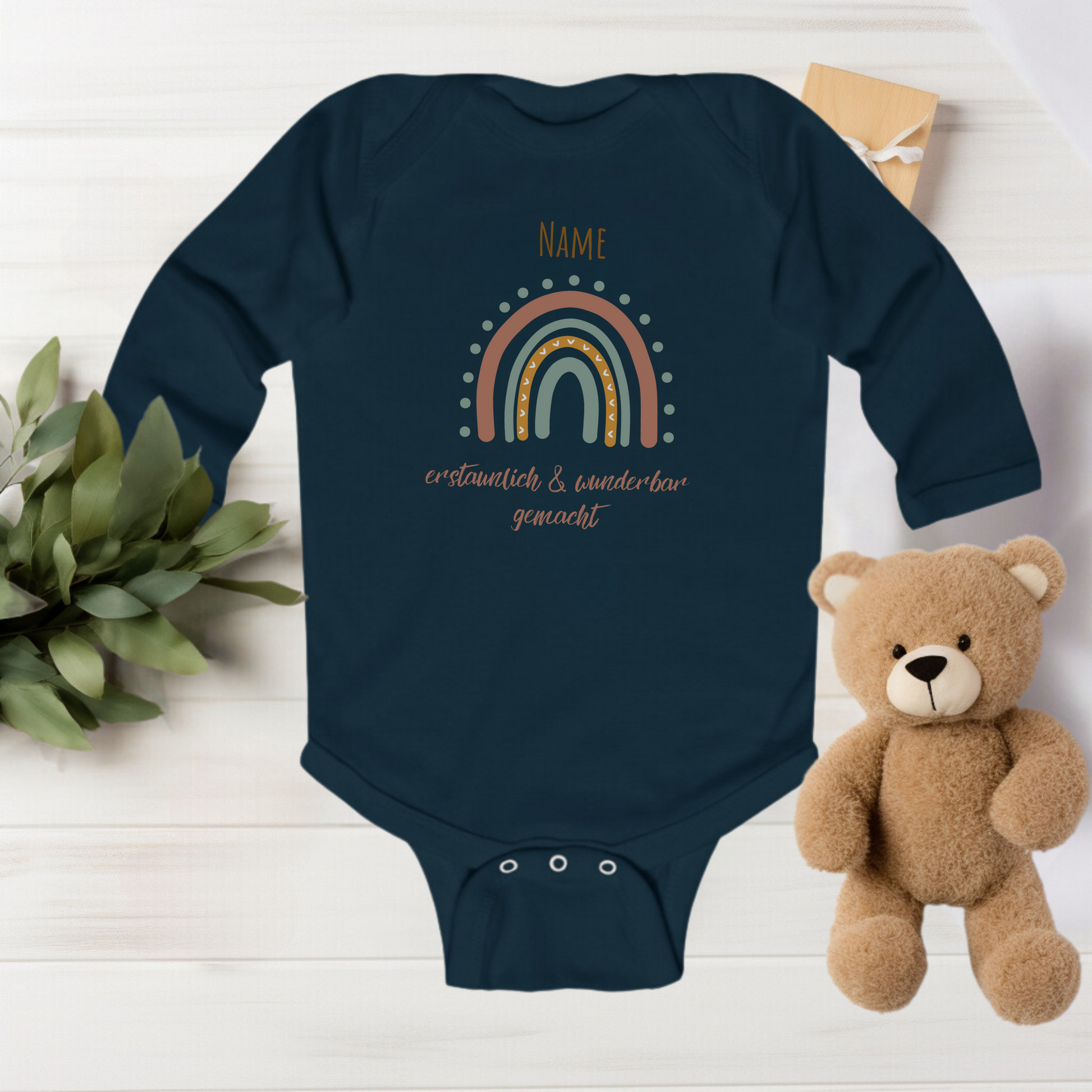 Unser liebevoll gestalteter Baby-Body mit christlichem Spruch und personalisierbarem Namen ist ein ganz besonderes Geschenk für die Kleinsten. Der Body verbindet stilvolles Design mit einer persönlichen Note und eignet sich ideal für besondere Anlässe wie die Taufe oder einfach als Zeichen des Glaubens und der Liebe.