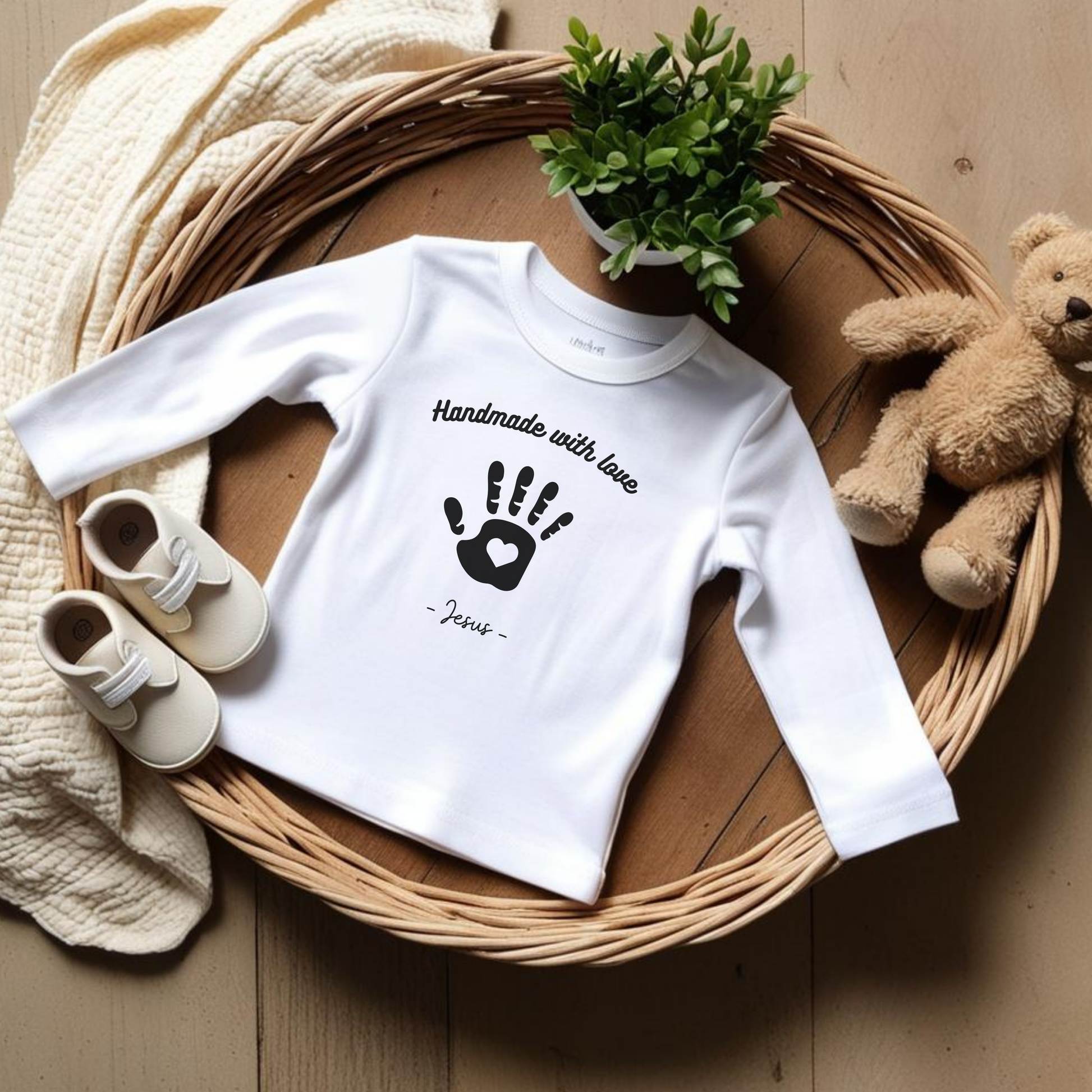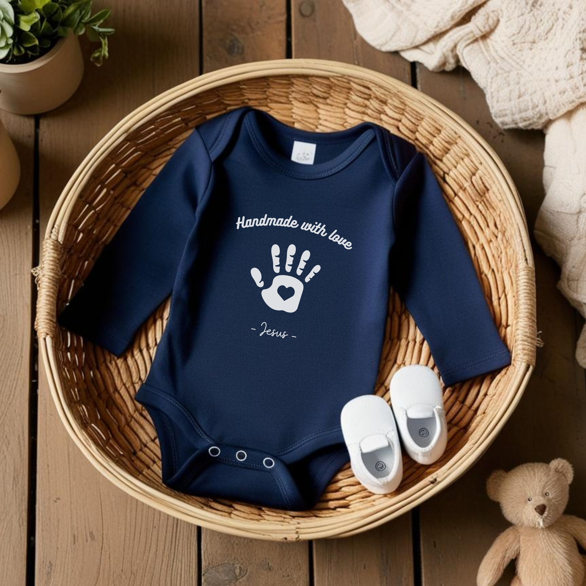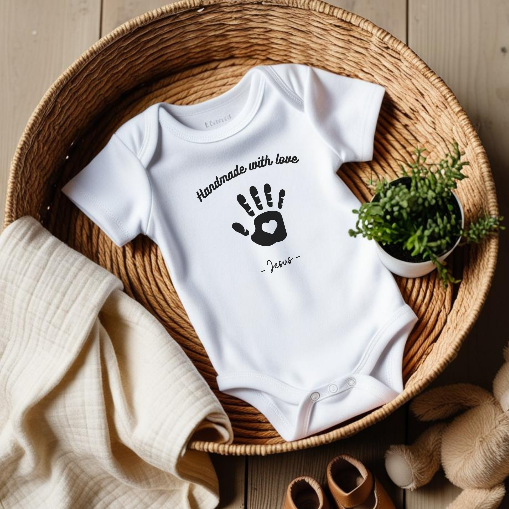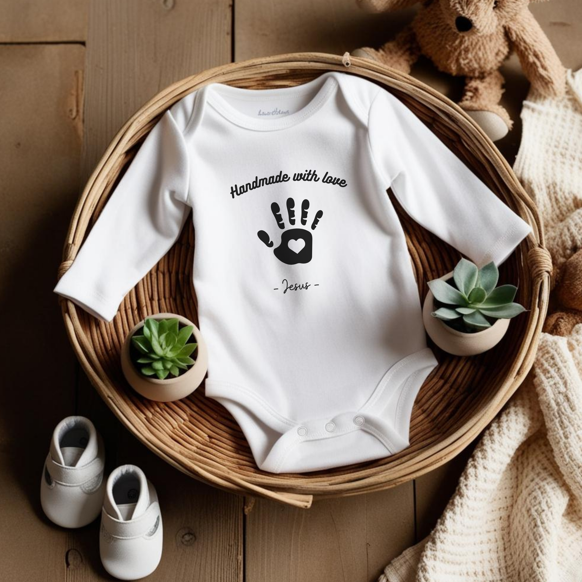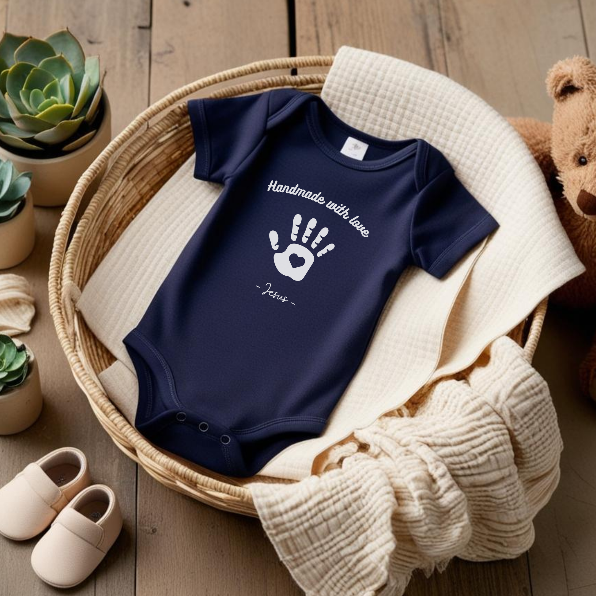 Unser liebevoll gestalteter Baby-Body mit christlichem Spruch ist ein ganz besonderes Geschenk für die Kleinsten. Der Body verbindet stilvolles Design mit einer persönlichen Note und eignet sich ideal für besondere Anlässe wie die Taufe oder einfach als Zeichen des Glaubens und der Liebe.