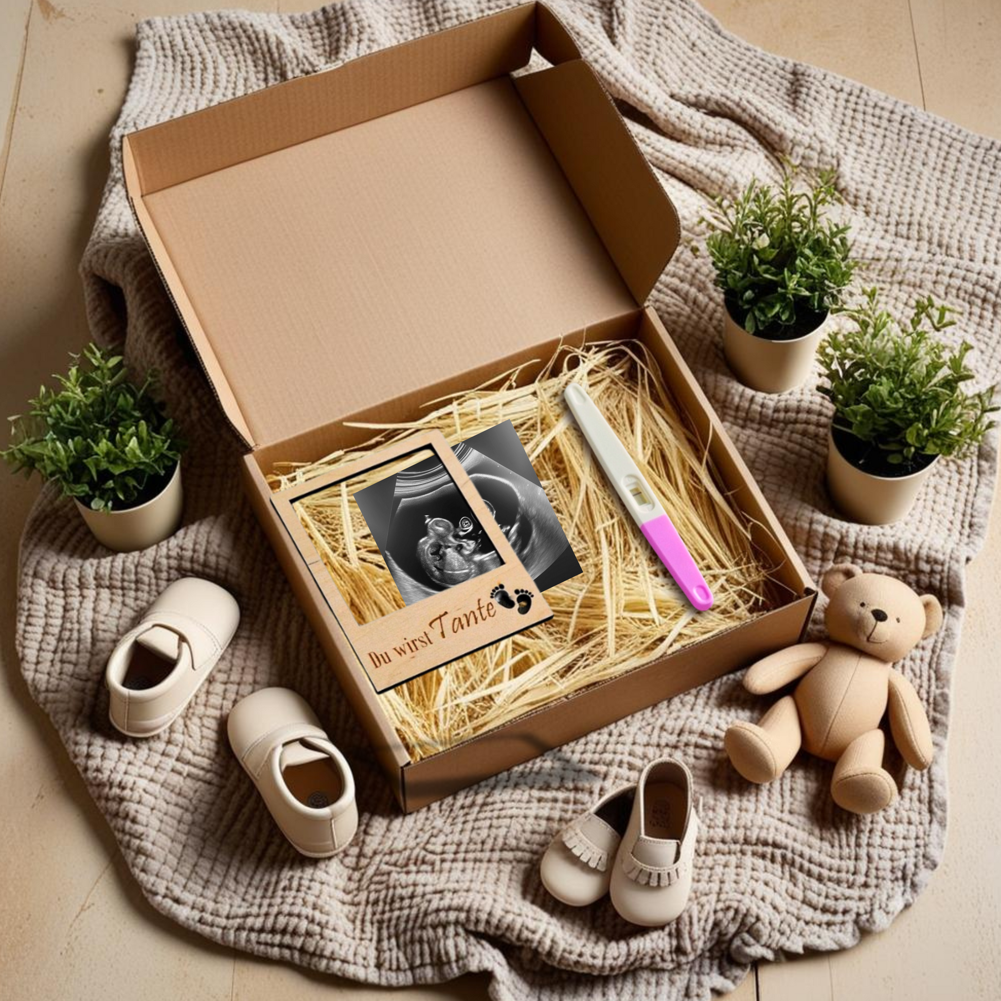 Verkünde deinem Partner und der Familie die Schwangerschaft auf eine besondere Weise! Unsere liebevoll gestaltete Holz Ultraschallrahmen mit emotionalem Text macht die Überraschung perfekt. Schneide dazu dein Ultraschallbild entsprechend zu und klebe es auf die Rückseite. Optional verpackt in einer hübschen Pappschachtel mit Dekostroh – bereit für den großen Moment!