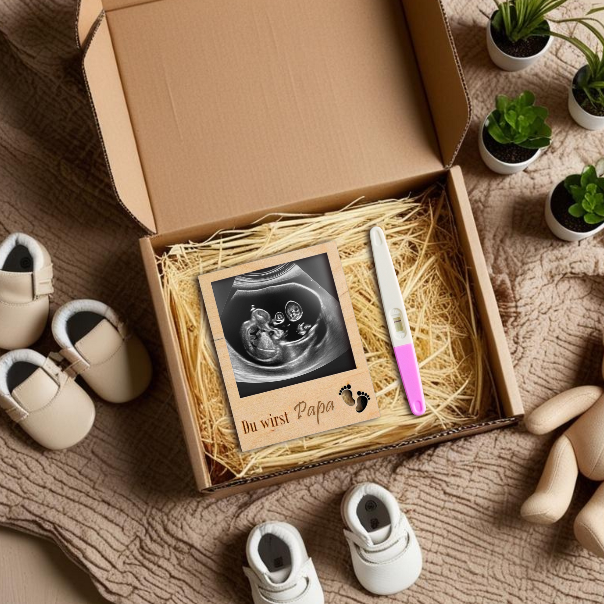 Schwangerschaftsverkündung mit Utraschallbild für den Partner / Oma / Opa / Tante / Onkel - Holzbody