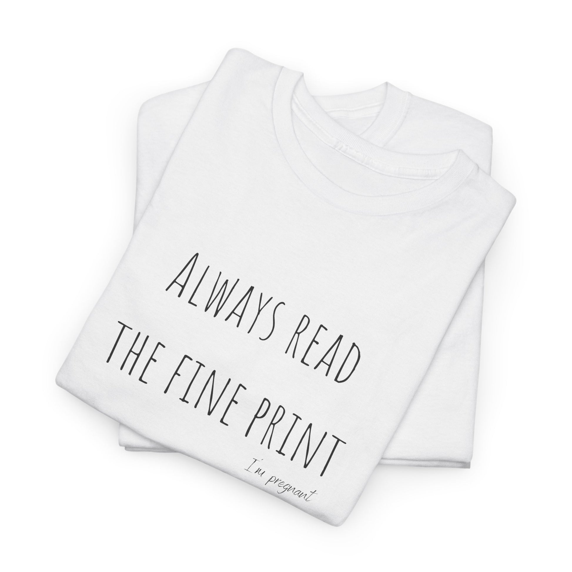 T-Shirt zur Schwangerschaftsverkündung "read the fine print"